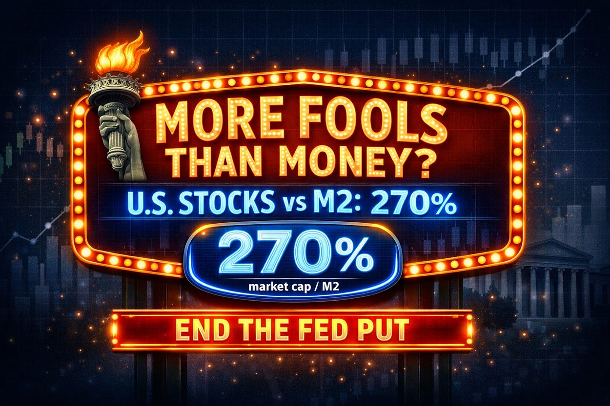 Market capitalization vs M2 (MSCI USA) is stretched versus USA's global peers and how this liquidity gap reframes U.S. stock market risk.