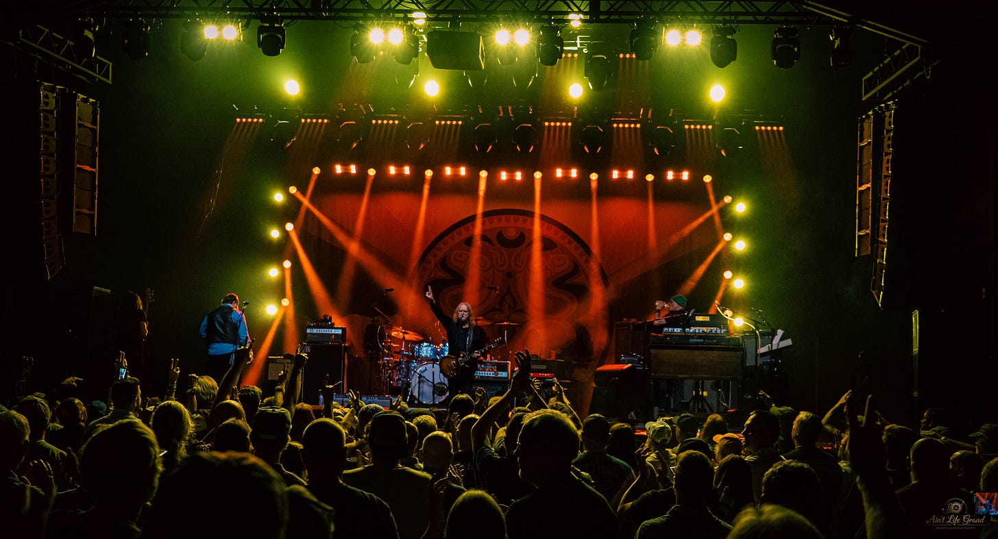 The audience had been with the band all night, no question about it, but there was still a kind of invisible boundary in place, as if everyone had stayed mostly inside their own little square of space. When “Soulshine” hit, that disappeared. Suddenly people who had held back all night were dancing like they had been waiting for permission. The crowd loosened all at once. You could feel it. What had been controlled became joyful. What had been contained became open. And with the stage lit up the way it was, everything about that encore felt amplified. It was one of those endings that does more than close a set. It sends people back out into the night carrying something with them.
