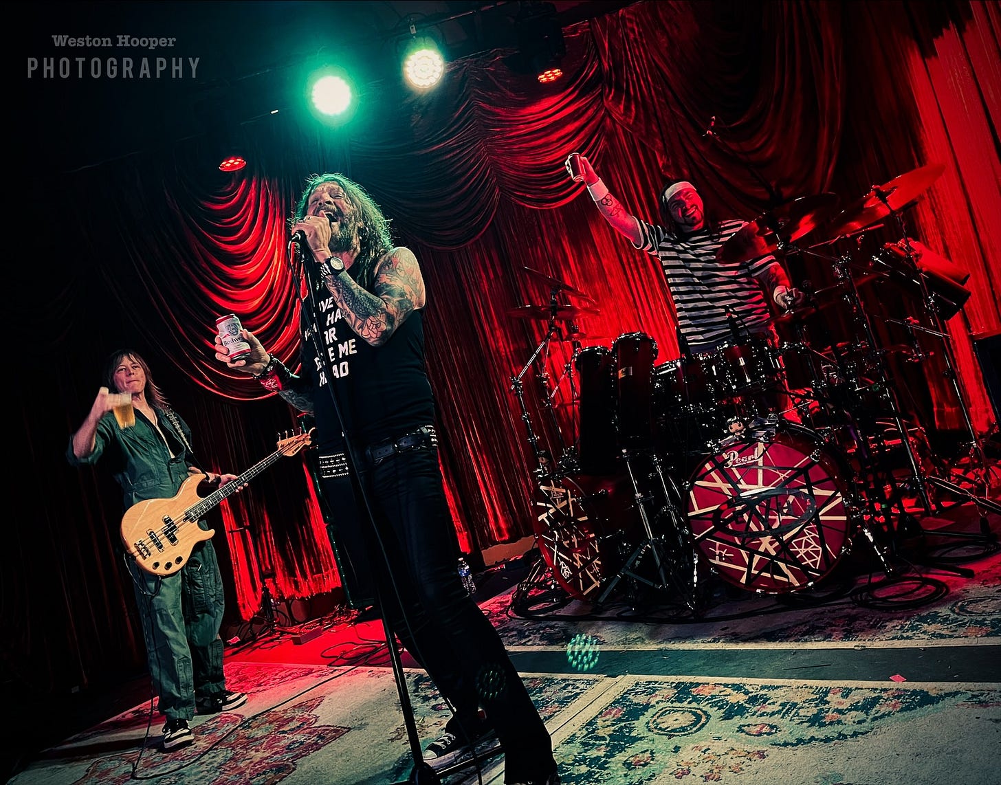 One of your strongest photo moments captures the real Van Halen ingredient that can’t be faked. Somebody is raising a drink near the kit like a toast mid-set, and it doesn’t read staged. It reads like permission. Like the room is allowed to be loud and joyful and a little stupid in the best way. Van Halen without that vibe becomes a museum exhibit. Van Halen with that vibe becomes a party with teeth.