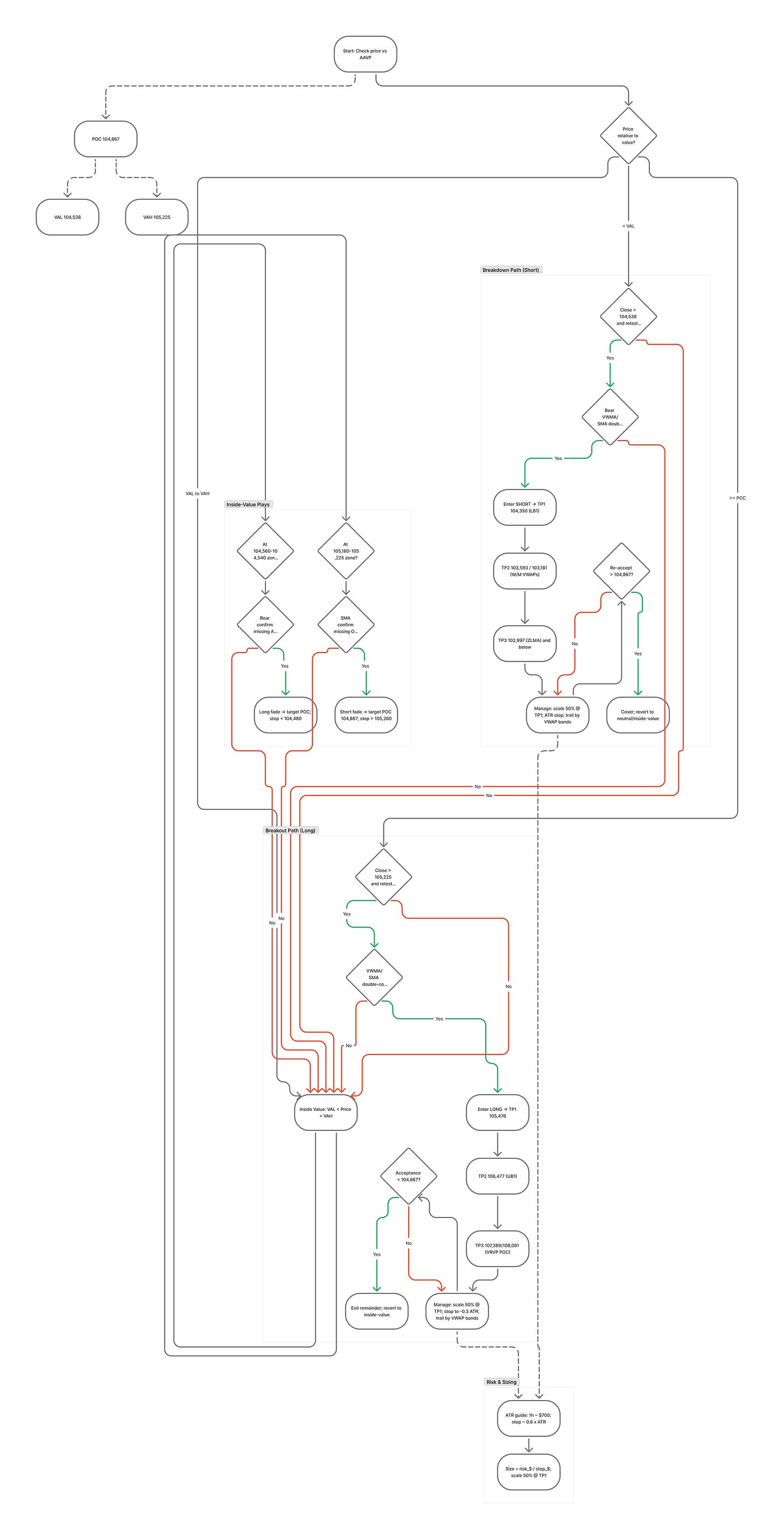 If price ≥ POC 104,867 then bias long-tilted; prepare Long Breakout path. [Theory]
