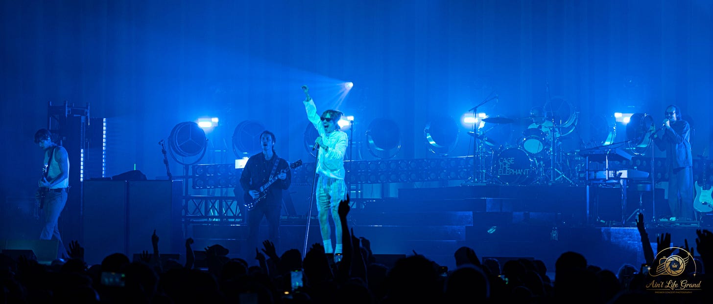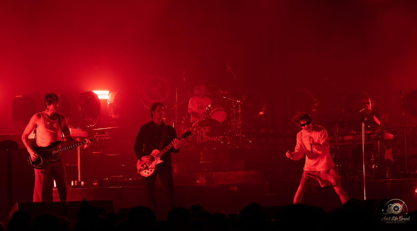 Then came the blackout. A heartbeat, a roar, and Cage The Elephant exploded onto the stage.