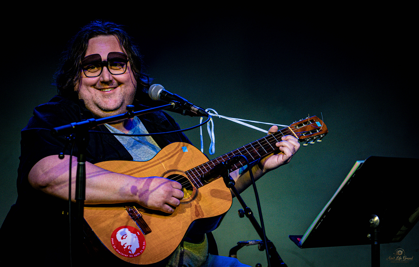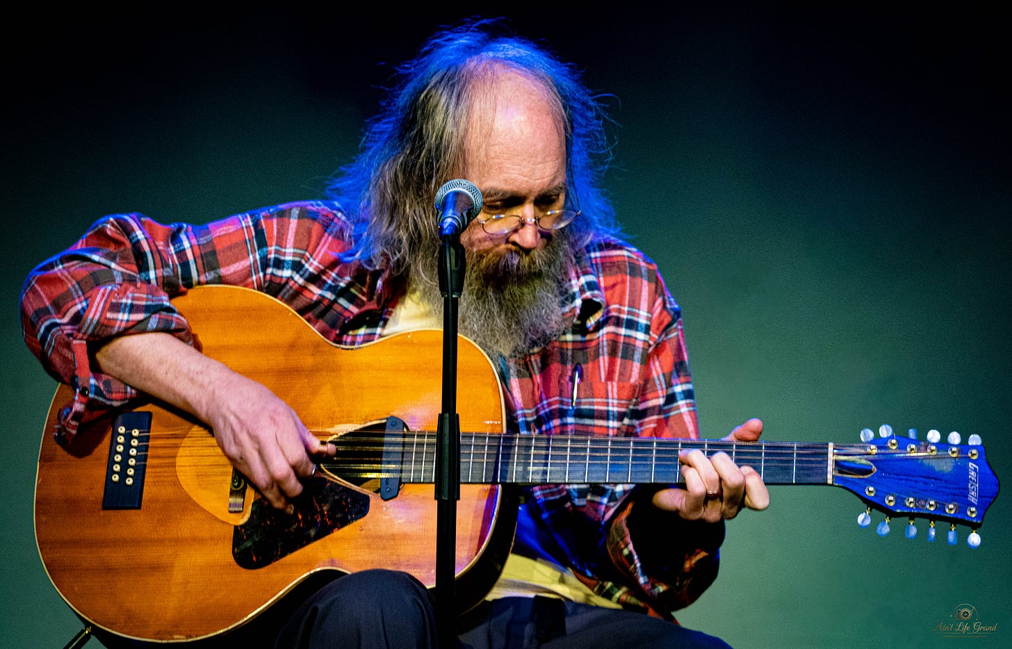 He stood there in an oversized red flannel, hanging off him like it had its own history. Before “Old Dog Blue,” he paused and explained the song’s arc—simple, nice, then confusing. Maybe for him. For me, it felt clear. A dog, a hunt, a meal, and eventually loss. A life told plainly, without needing complexity to matter.