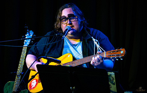 Sonically, the set leaned folk-indie, stripped down and almost grounded. But visually, nothing about it stayed still. A shoestring guitar strap hanging like an afterthought, flipped-up shades, a head bobbing in a rhythm that didn’t quite match anything else in the room. Then the faces—rolling eyes, exaggerated expressions, moments that felt like performance art colliding with sincerity. You don’t watch him casually. You either commit or you miss it.