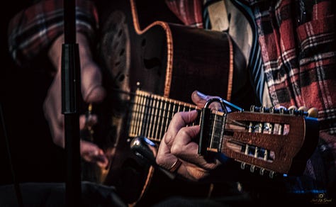 That history isn’t referenced, it’s embodied. Resonator guitars ring with metallic bite, twelve-string passages stretch wider than they should, and a fretless banjo feels more like a voice than an instrument. It’s technical, deeply so, but never feels like a demonstration. It feels necessary.