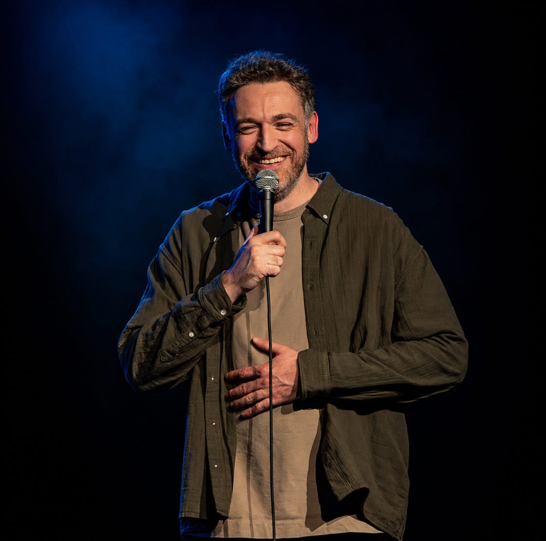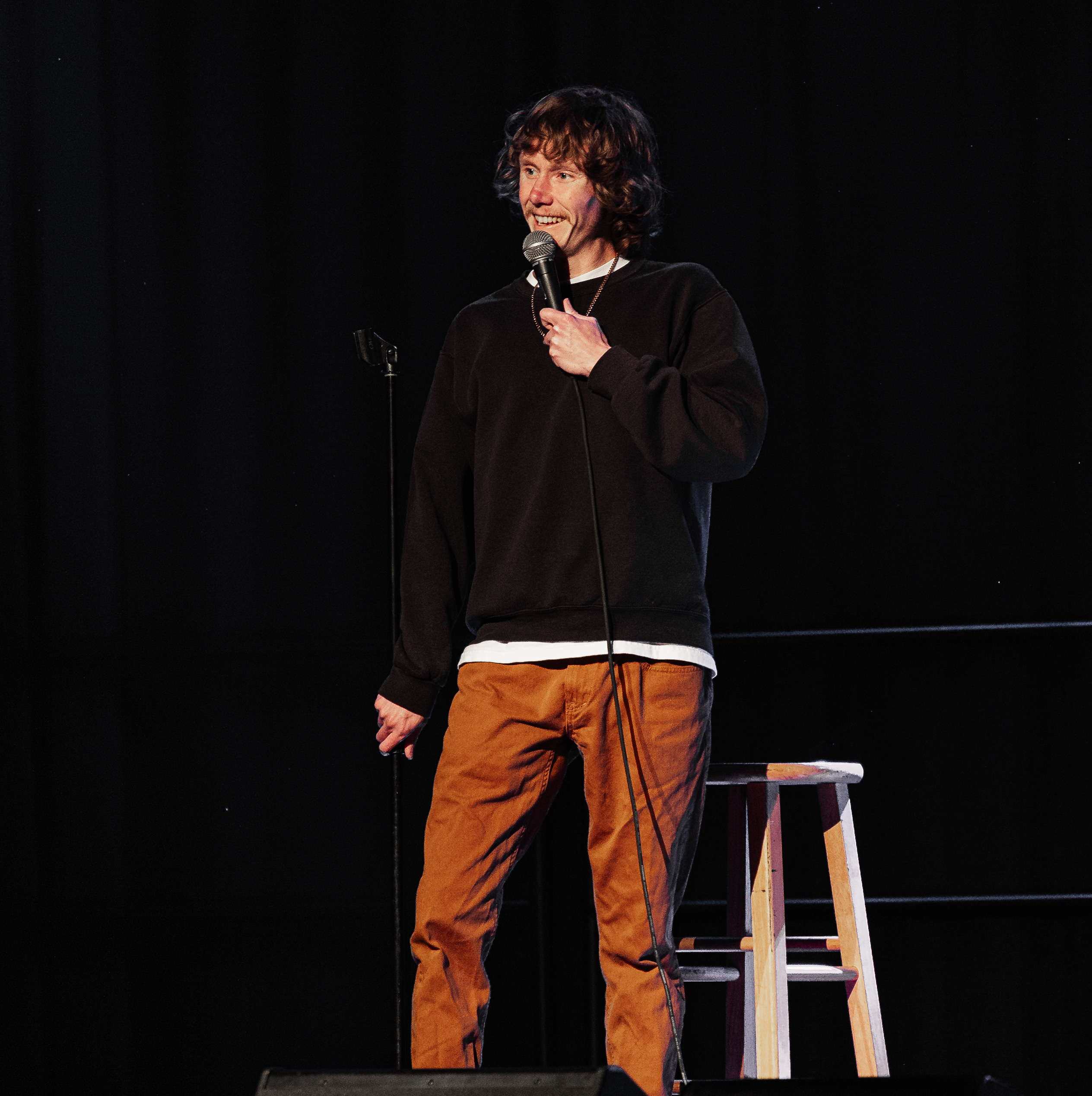 Aidan McCluskey opened the night with a style that leaned heavily into long-form storytelling. Aa deliberate contrast to the quick-hit, punchline-driven sets that often dominate opening slots. Instead of rushing to win the room, he took his time, building narratives piece by piece, letting details simmer before landing the payoff.