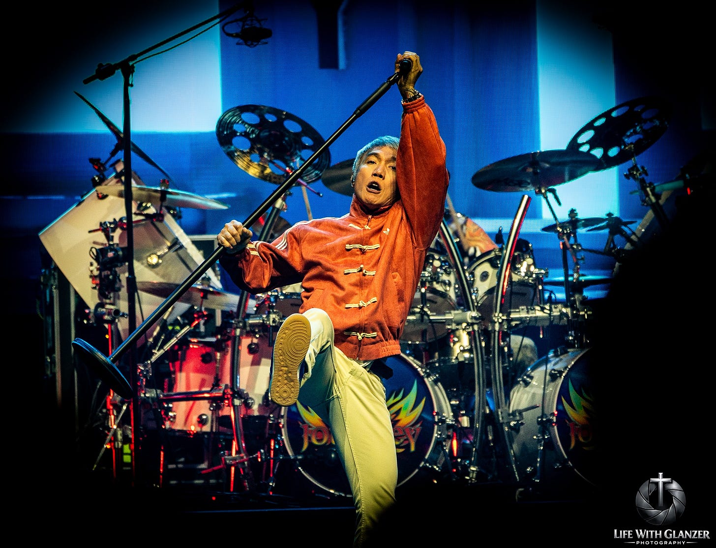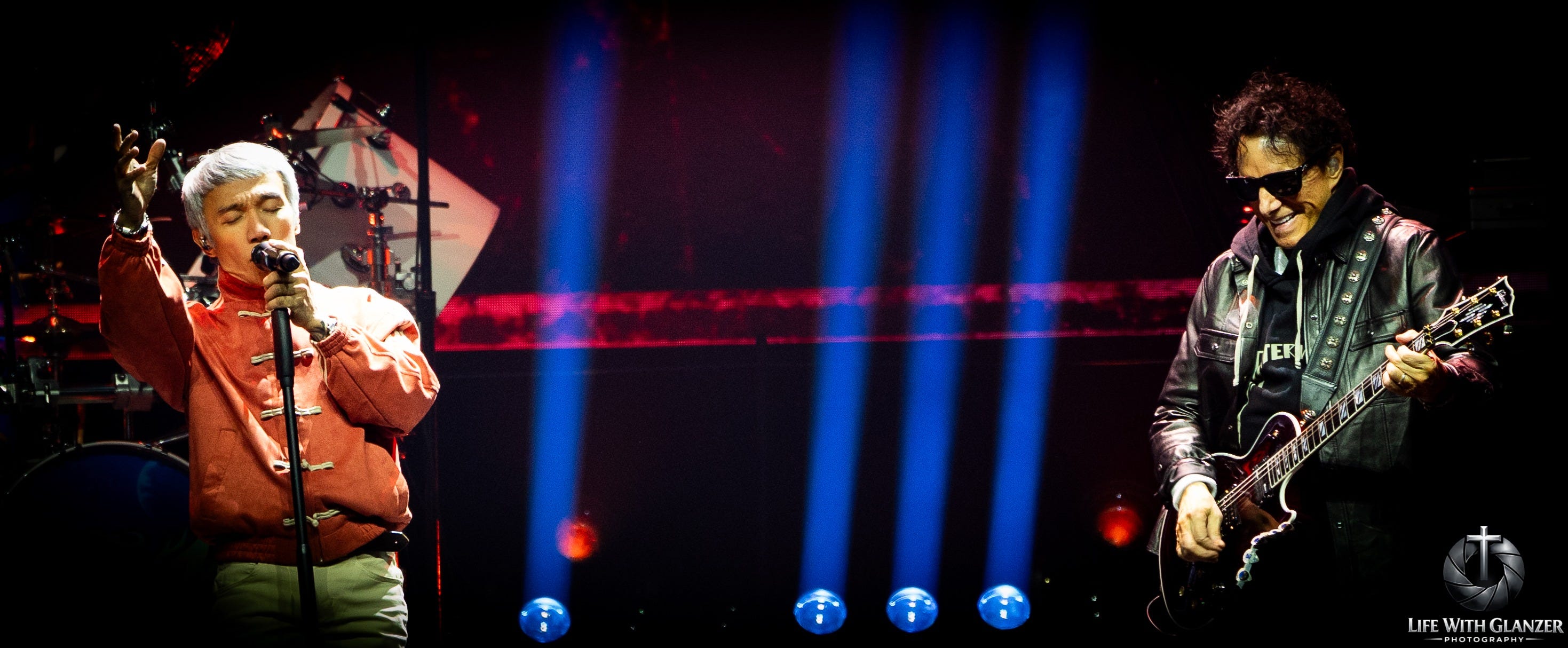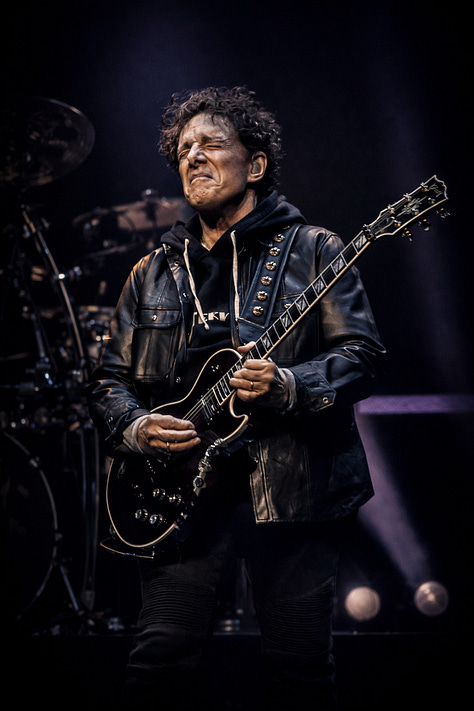 Not in a hollow imitation way. Not in some tribute-band approximation. There are moments where the resemblance is genuinely startling, where the phrasing and lift hit with a familiarity that makes the room collectively lean in. But what makes it work is that he doesn’t come off like someone trying to erase the past. He comes off like someone who understands the burden of carrying it. That’s a very different thing, and it’s the reason this version of Journey still works.