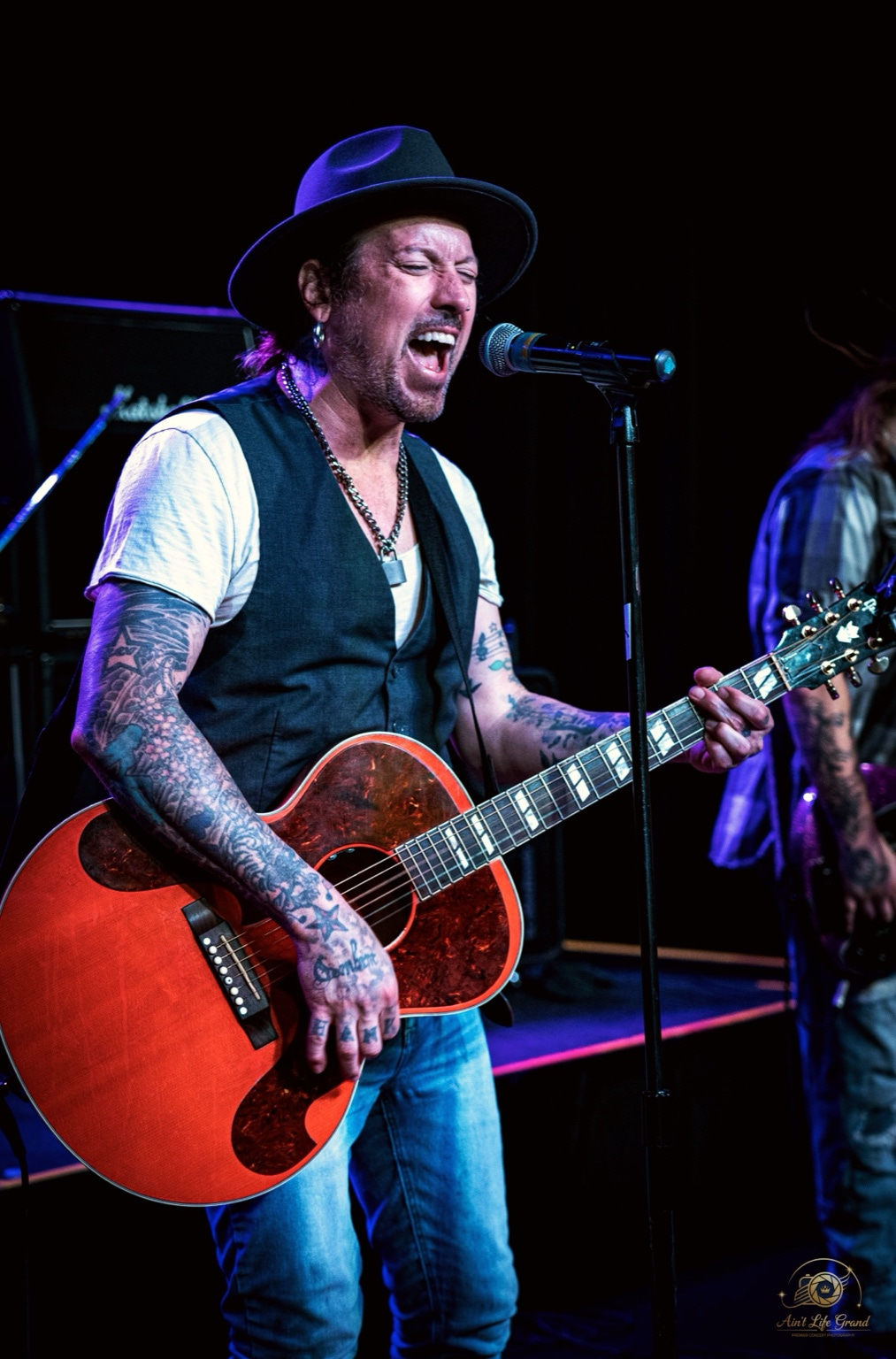 Brandon’s energy was magnetic — humble yet commanding. The tattoos, the hat, the weathered acoustic guitar — all the rock ’n’ roll elements were there, but what really hit was the sincerity. You could feel him mean every word.
