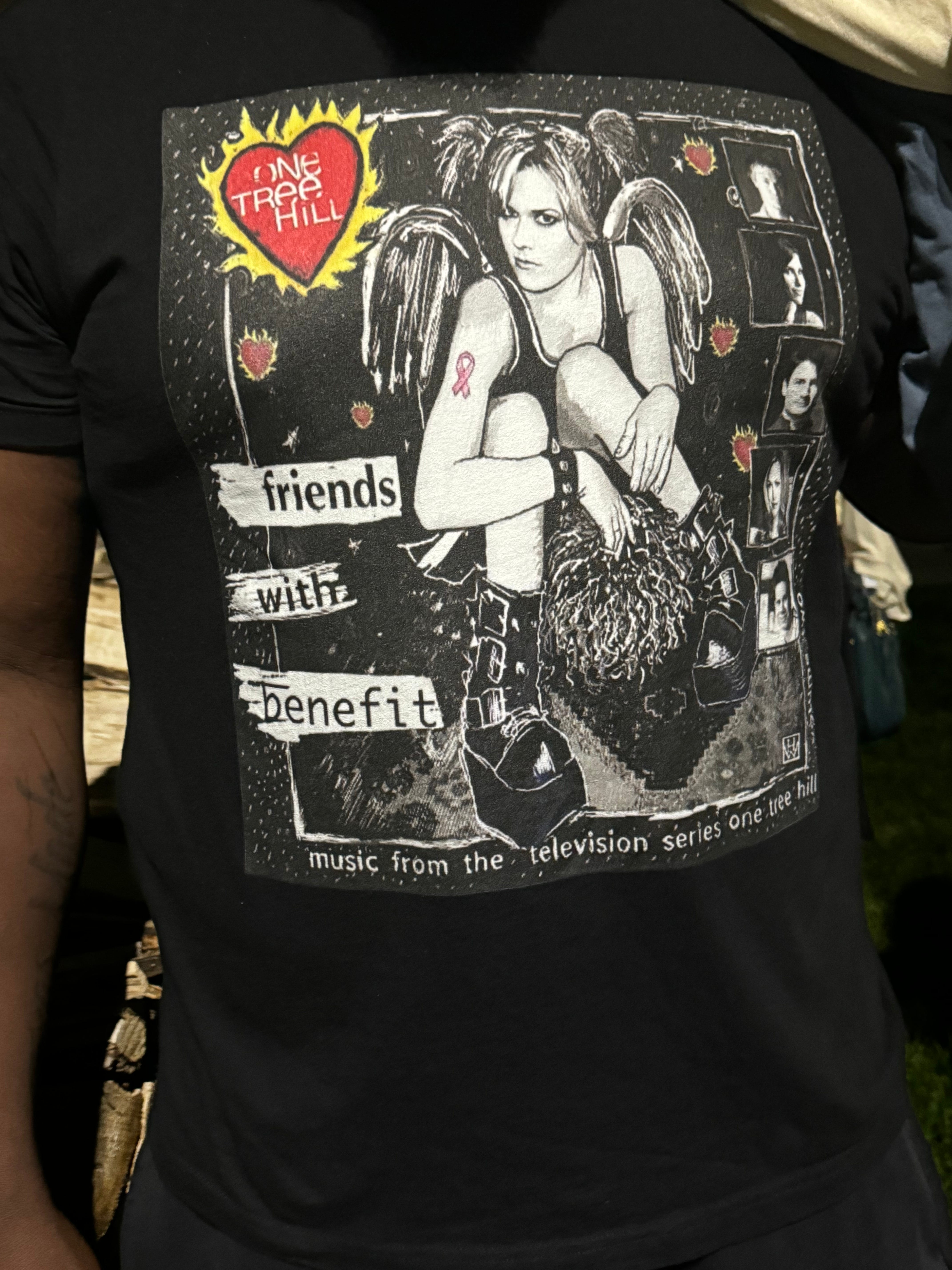 As we entered The District, the first thing that caught my eye was the abundance of One Tree Hill merchandise. I spotted a few high-end jerseys with the Keith Scott, played by Craig Sheffer, Memorial "KS" stitched on, similar shirts, and some fashionable outfits inspired by Clothes Over Bros. The show Clothes Over Bros was created by Brooke Davis, played by Sophia bush, but what really pulled the entire thing together was the pieces we saw were all the ones inspired by Peyton Sawyer, played by Hilarie Burton Morgan. The only young core cast members that weren’t openly represented this night were Nathan, Haley and Mouth, played respectively by James Lafferty, Bethany Joy Lenz, and Lee Norris.