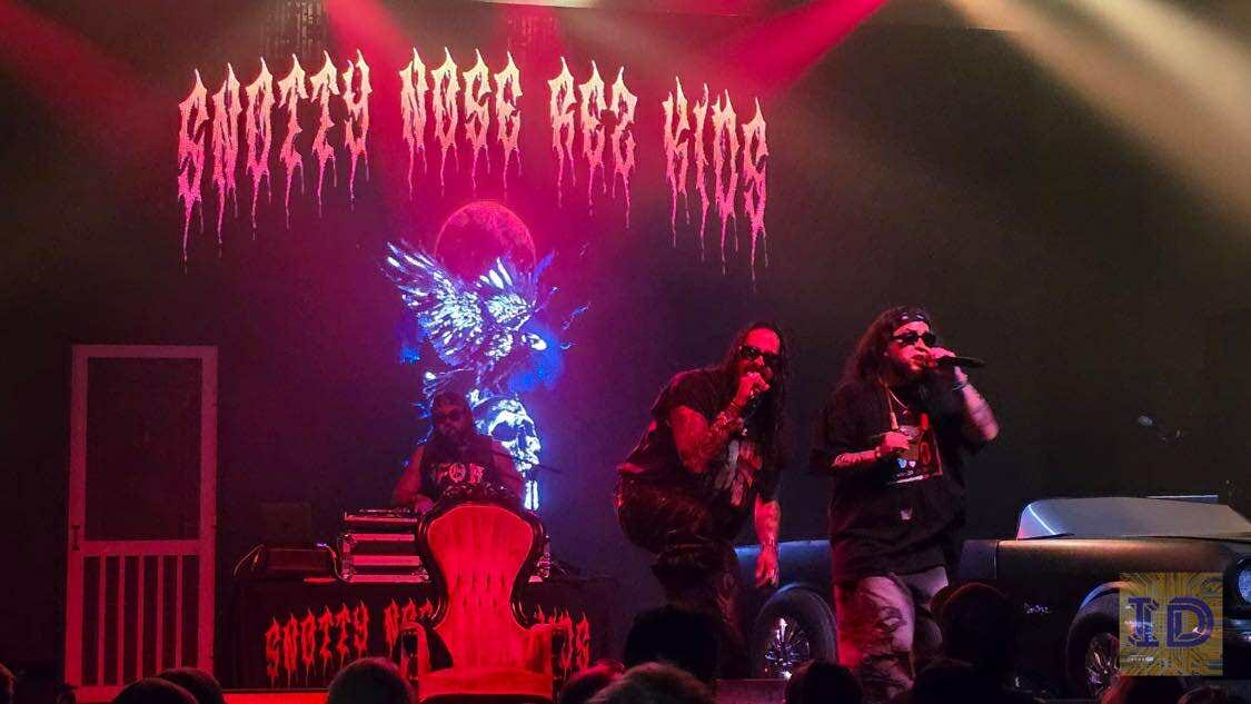 Then came the Snotty Nose Rez Kids — one member planted kinglike in a chair thanks to a busted leg, the other pinballing across the stage. Half mobile, fully magnetic.