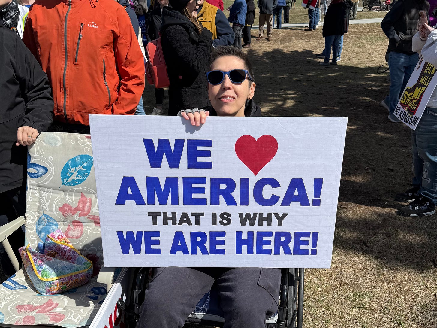 In her poem, KC Brauer moved from personal vulnerability to a message of collective strength, telling the crowd that their presence was itself an act of defending democracy. By connecting individual hardship to shared resilience and ending with a unifying chant, Brauer’s poem emphasized that resisting autocracy requires unity, participation, and a deep love for community.