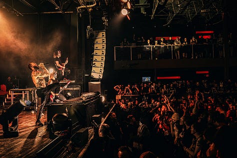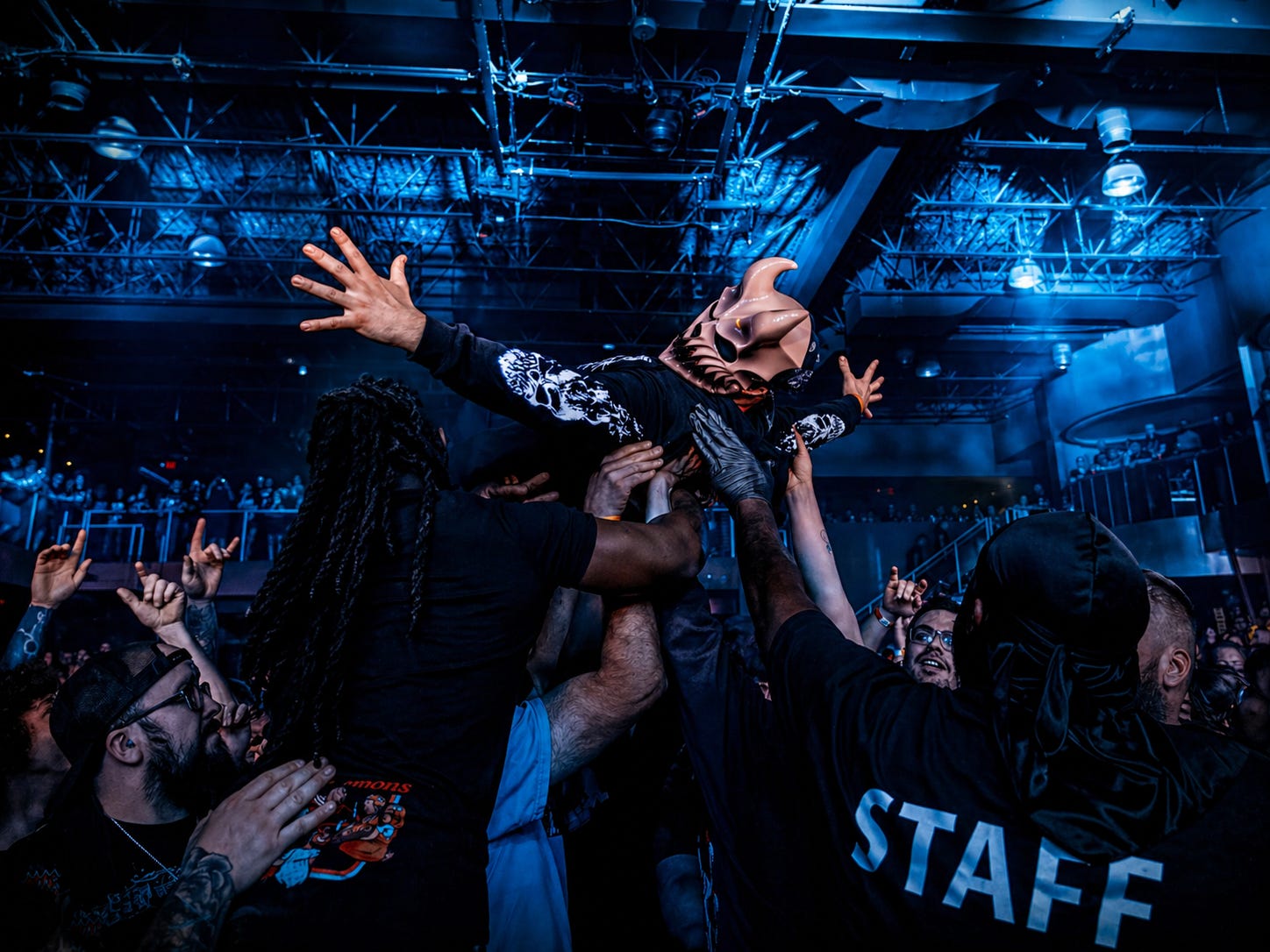 But it was the crowd itself that became an extension of the performance. Circle pits opened and collapsed in rapid succession. A wall of death split the floor with purpose before crashing back together on cue. Waves of synchronized jumps rippled outward from the barricade to the back of the room. It was movement at scale. Volatile, but never directionless.