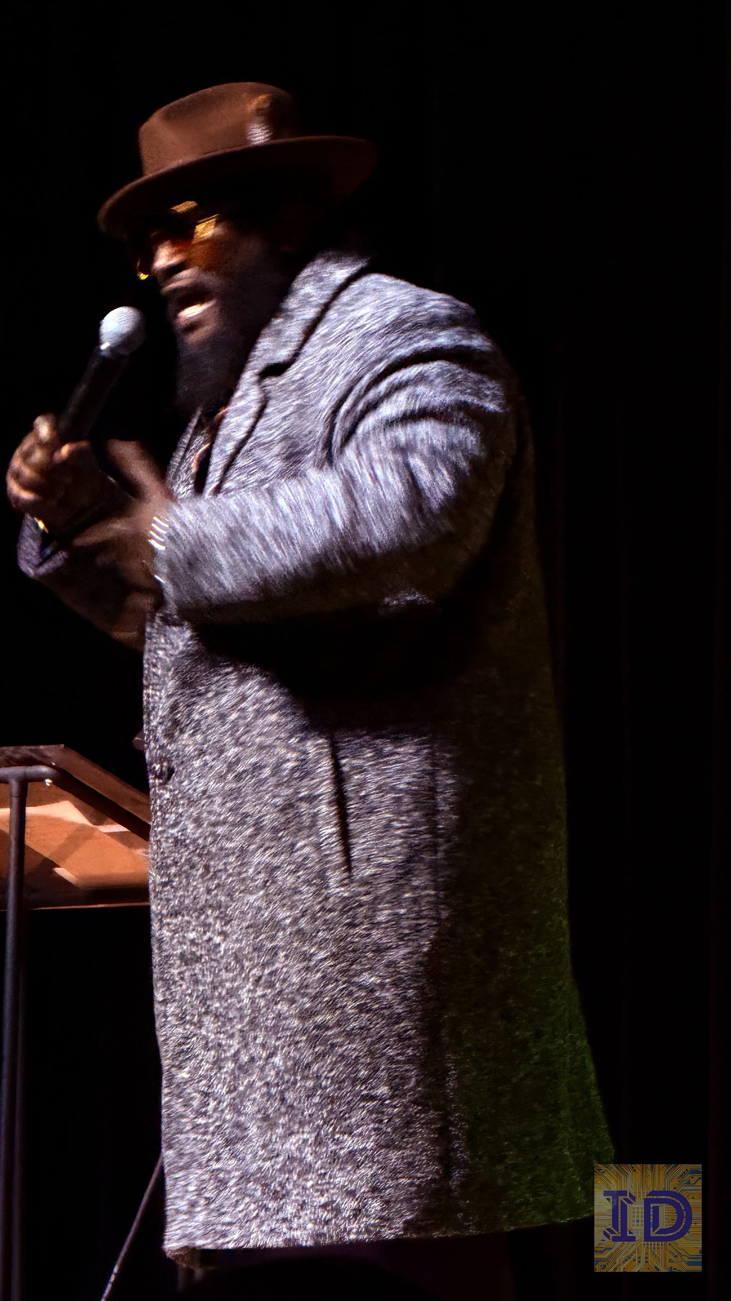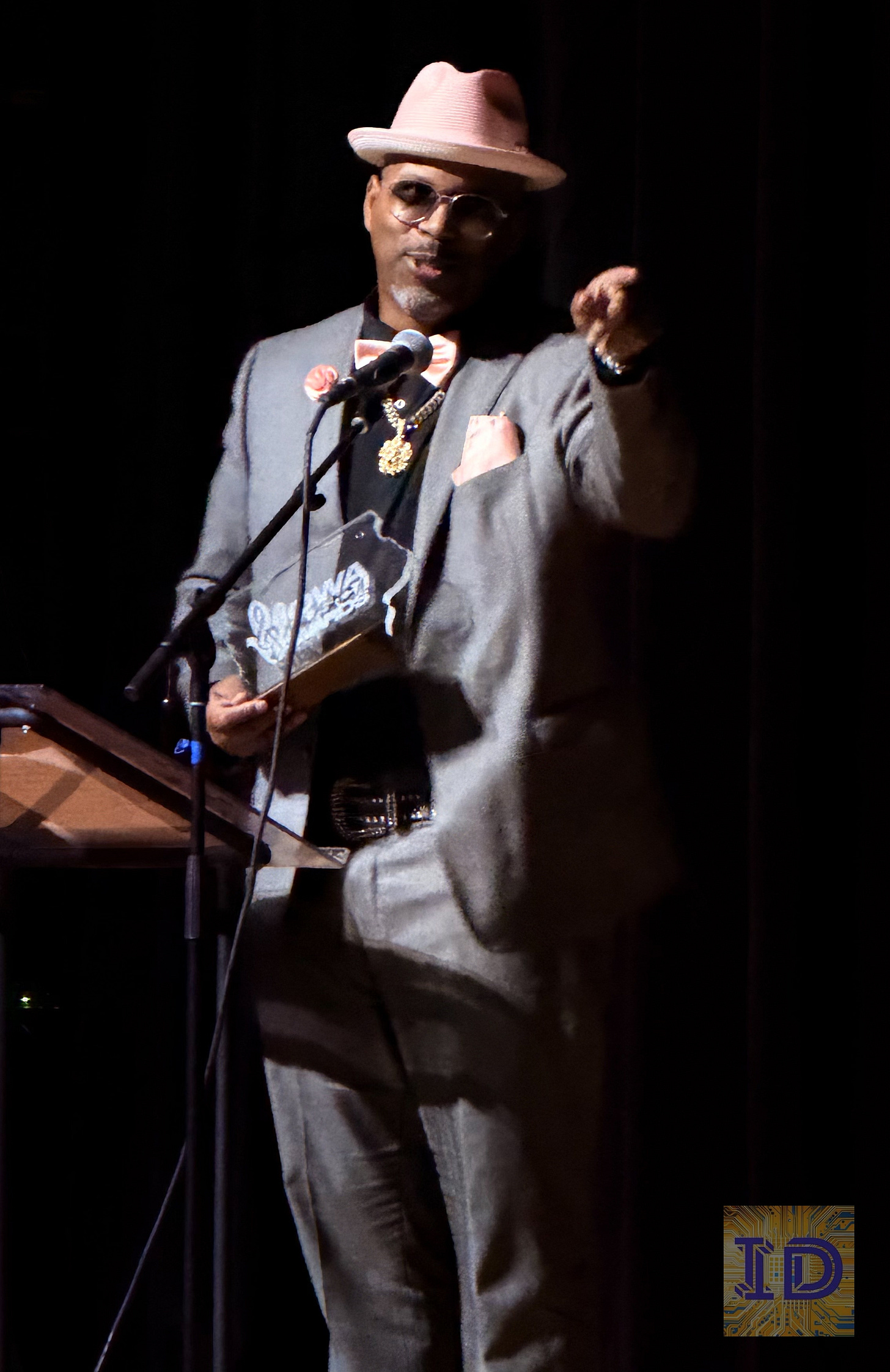 Anthony Luke, a WWE Wrestler, was shouted out by Tone Da Boss for using a song he made was the swing to set us into a WWE tone, teaming with IMF Wrestling’s Gary Patrick to present. In the middle of it, Omen Black stormed the stage in full IMF wrestler mode, championship belt and all. Classic wrestling skit energy dropped into an awards show.
