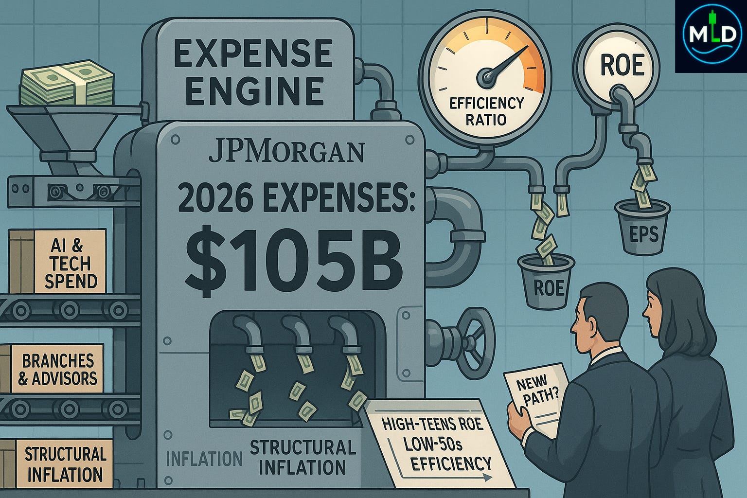 Right now, the market is charging JPMorgan a fee for uncertainty. It wants proof that $105 billion in operating expense will translate into sustained high-teens ROE rather than bloated overhead.