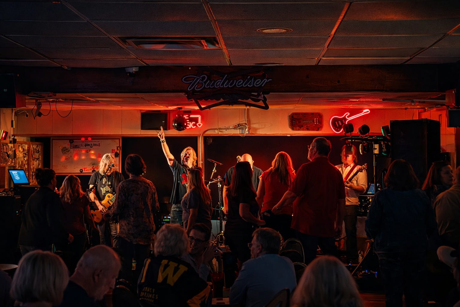 Glasses went up. So did hands. And in that second, whatever separation was left between stage and floor disappeared. It wasn’t a band playing to a crowd anymore. It was one room, one pulse, one shared agreement about what the rest of the night was going to be.