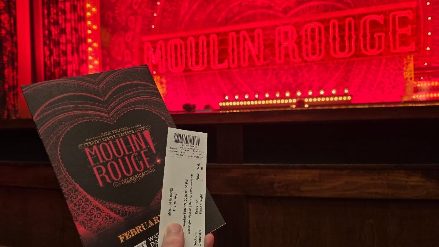 Few movie musicals have had the staying power of Moulin Rouge. Since its 2001 release starring Nicole Kidman and Ewan McGregor, Baz Luhrmann’s glitter-soaked fever dream has held a firm place in my personal canon. The atmosphere. The romance. The maximalist spectacle. And, of course, the jukebox soundtrack that somehow made pop anthems feel at home in 1899 Paris. The Washington Pavilion even had one of the Tony awards, 1 of 10 awarded to the show, displayed when you entered the building.