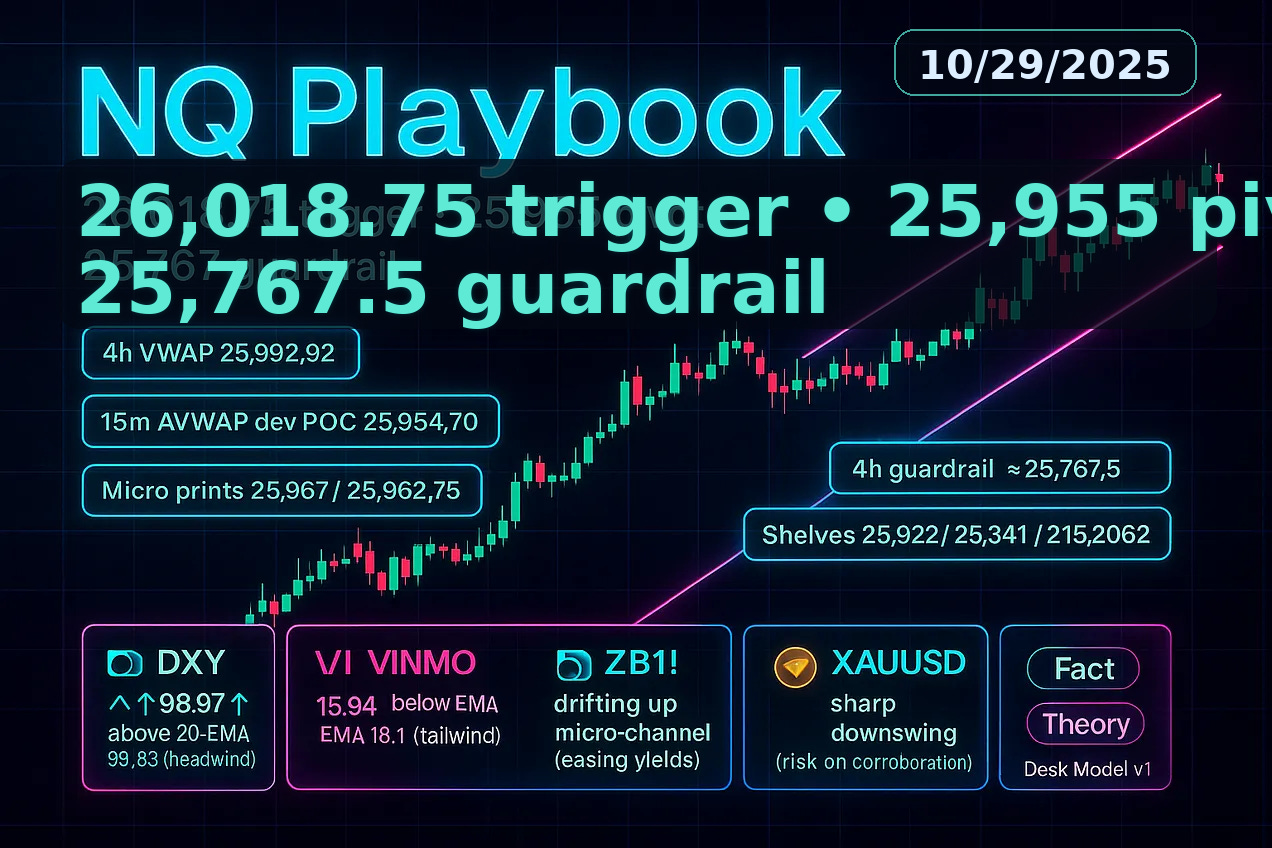 NQ Futures Playbook: Trigger 26,018.75, Pivot 25,955, Guardrail 25,767.5 (10/29/2025)