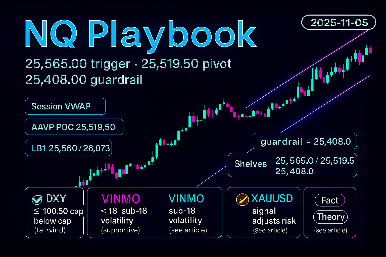 NQ FUTURES: Trigger 25,565.00, Pivot 25,519.50, Guardrail 25,408.00 Date of Article(11/05/2025)