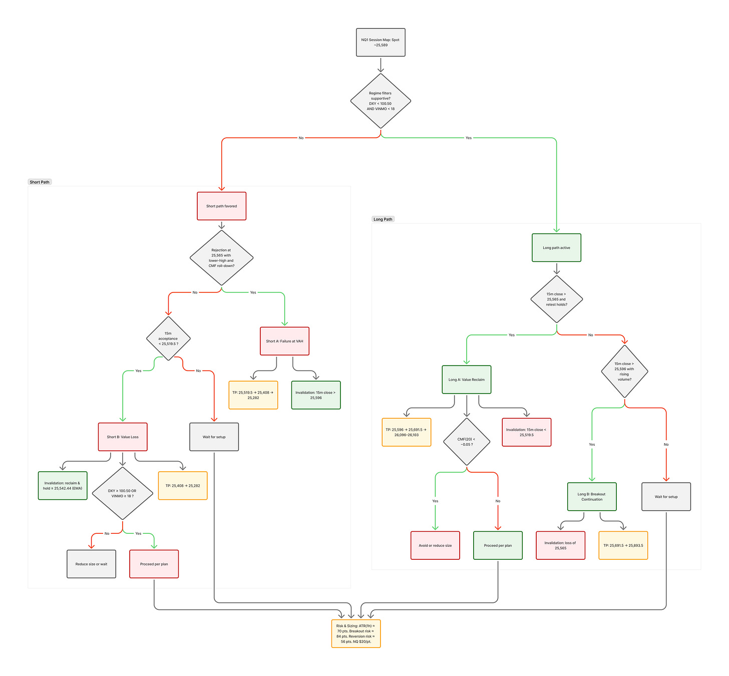Value-area low (VAL): 25,408.00 → Session guardrail. [Fact]
