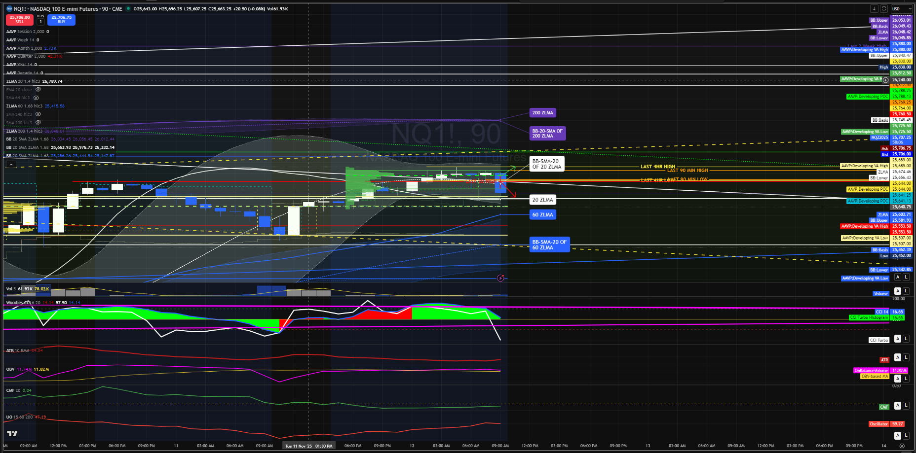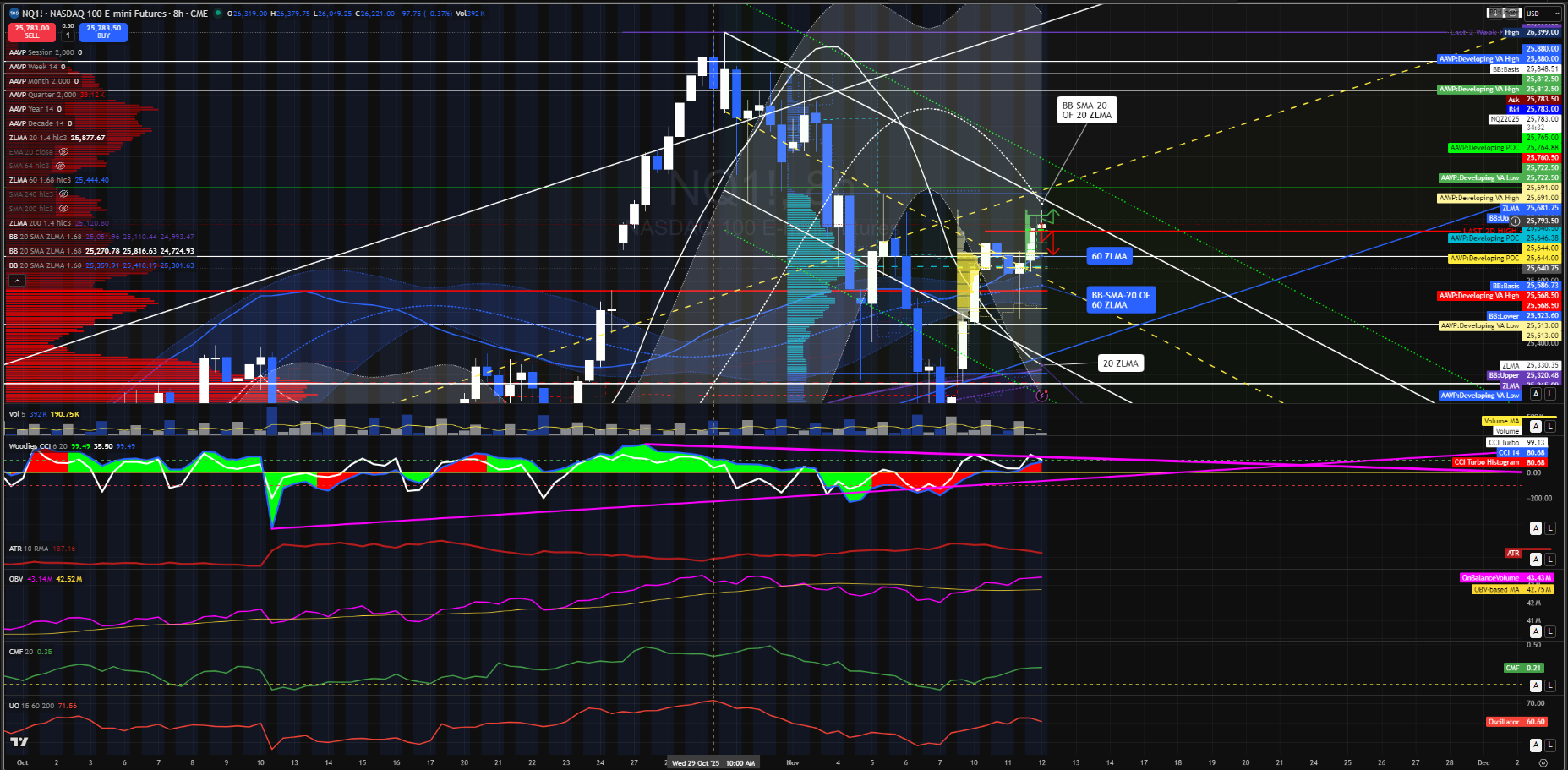 NQ FUTURES: Trigger 25,689.00, Pivot 25,641.25, Guardrail 25,507.00 (11/12/2025)