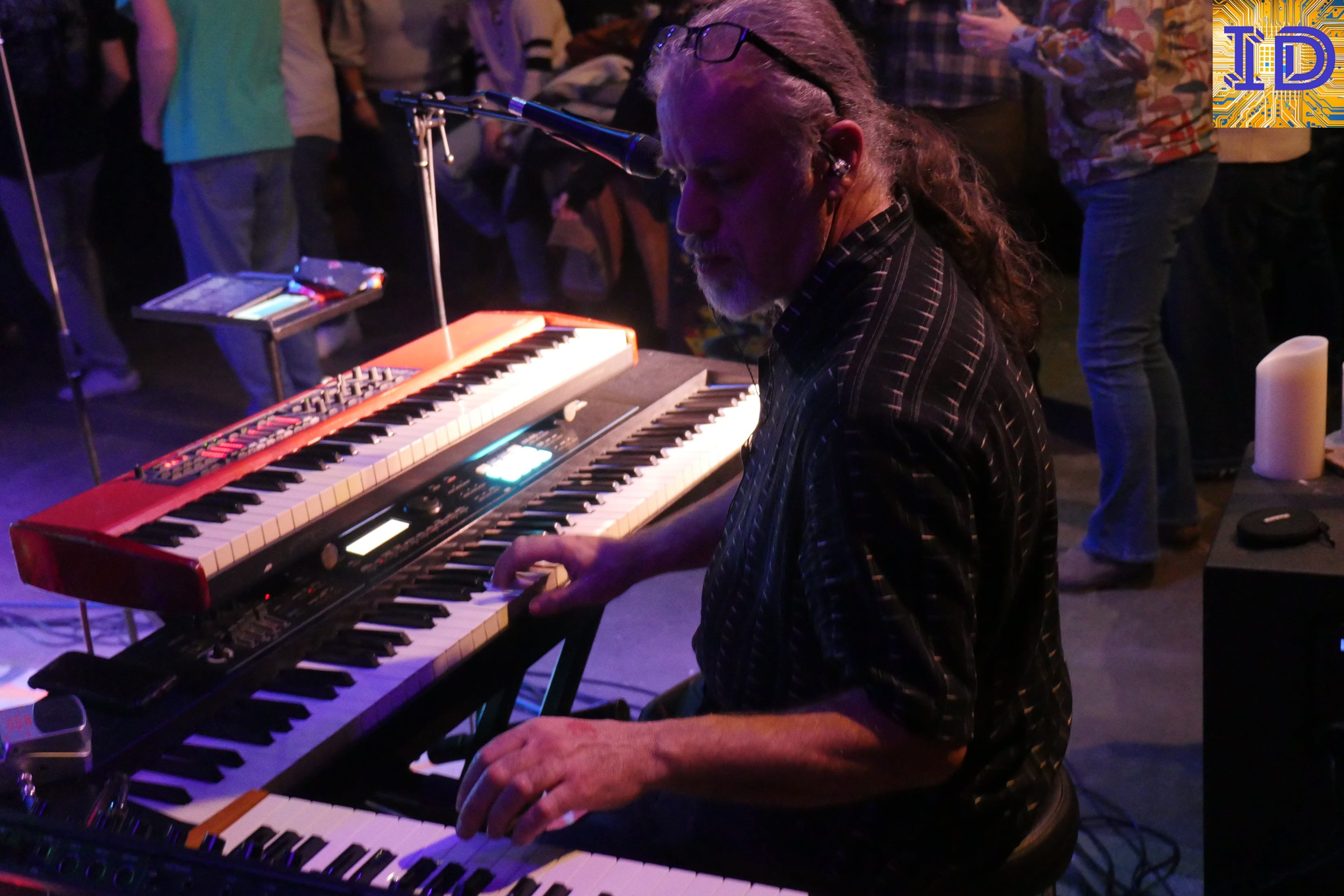 Jon “Stoltz” Stoltzfus on drums brought that precise, professional calm that music educators often have when they are driving the bus at speed. Kevin Huhn on bass held down the low end with that rare blend of jam looseness and orchestral authority. Jordan Giangreco on keys brought the kind of texture that makes a set feel three-dimensional, and he pulled out a Leslie speaker, humming like a living thing whenever the jams opened up.