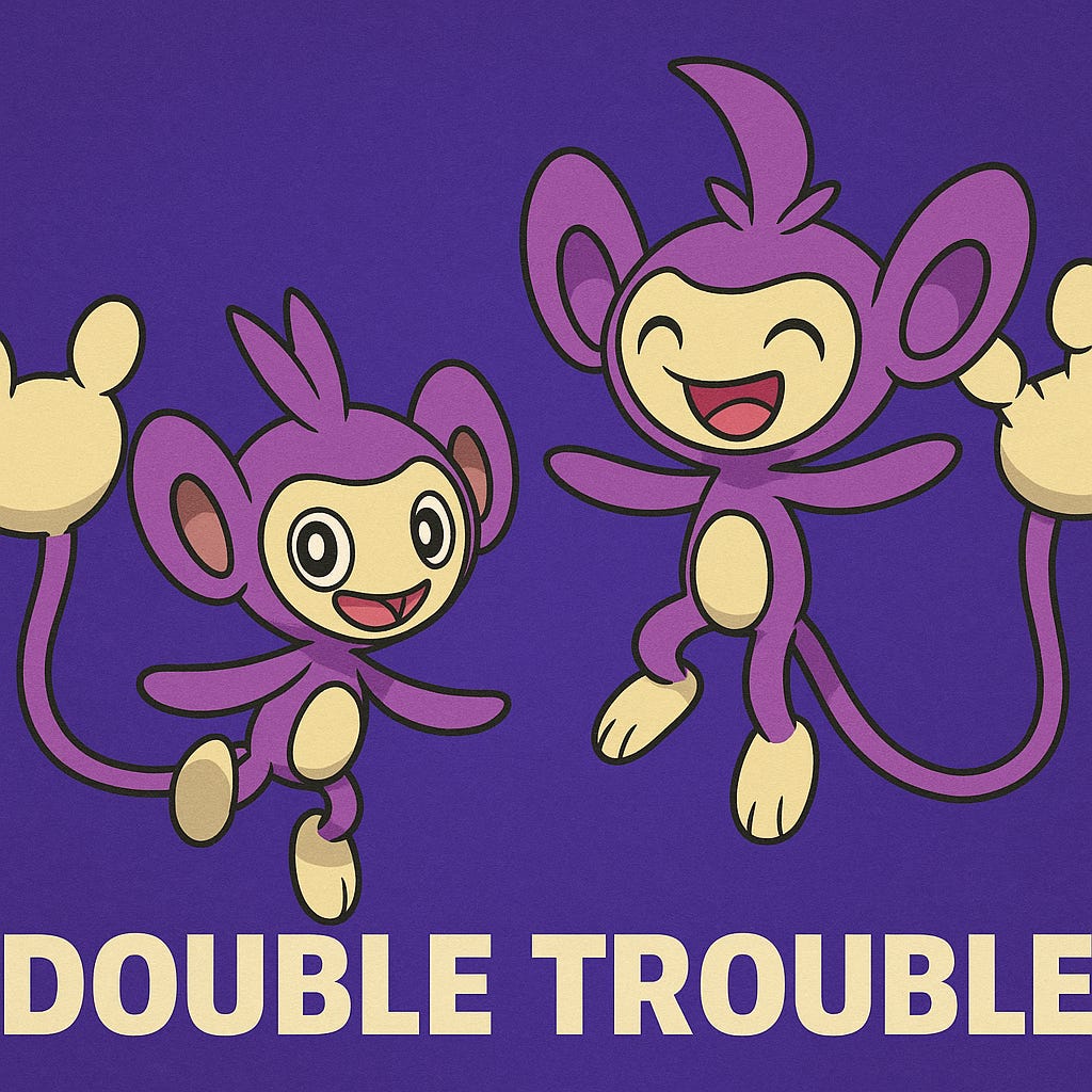 When Aipom spends enough time with humans or other Pokémon in a rhythmic environment—battle training, drumming, dancing—it begins to change. Its single tail splits into two, each developing its own rhythm and reflex. This metamorphosis births Ambipom, the Double-Tailed Performer.