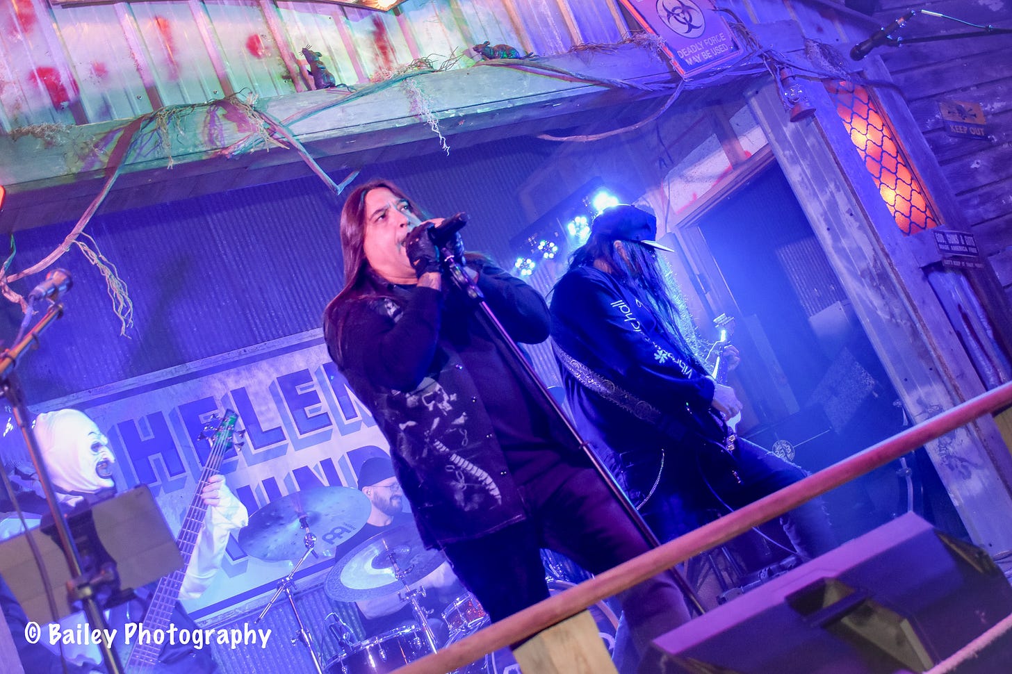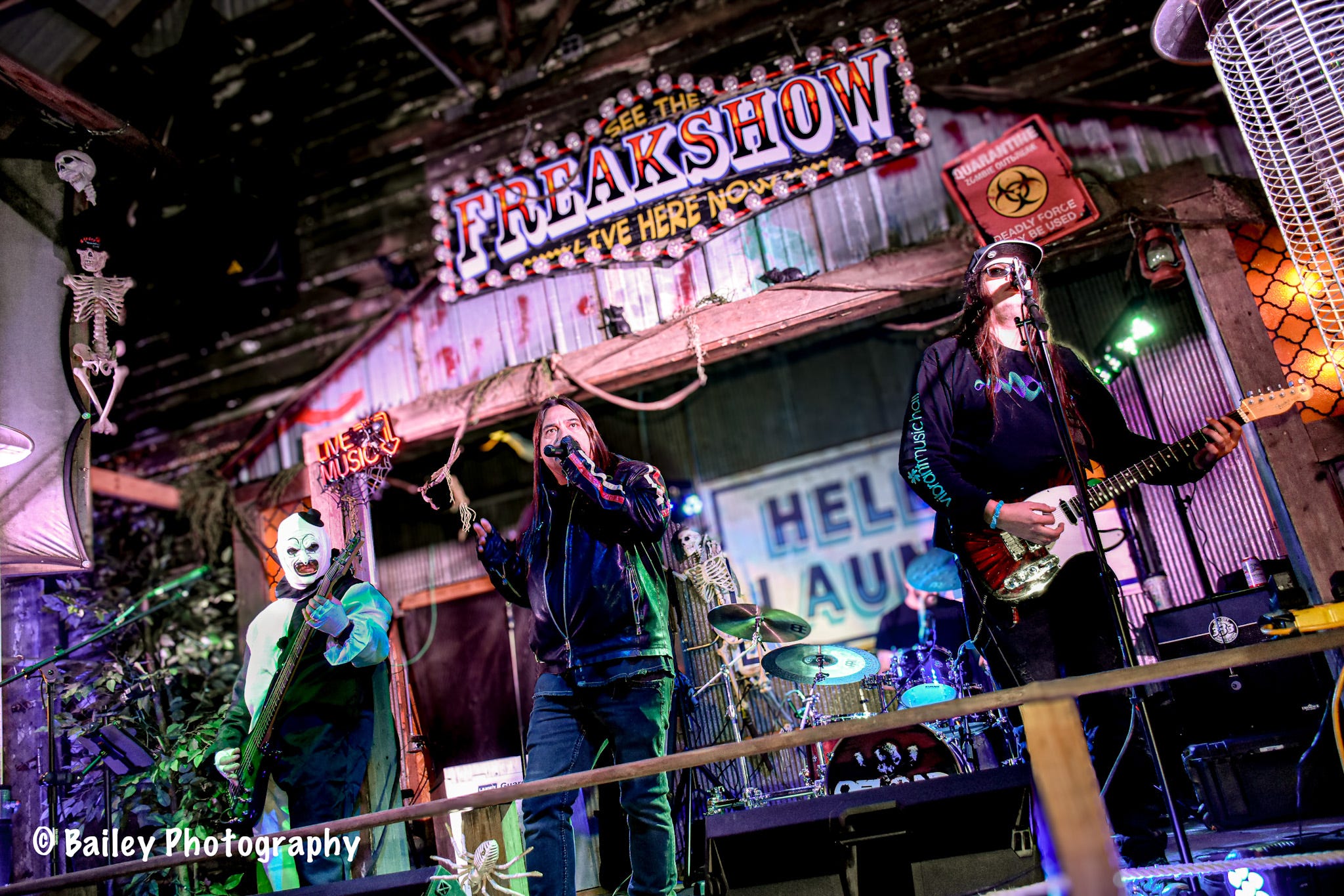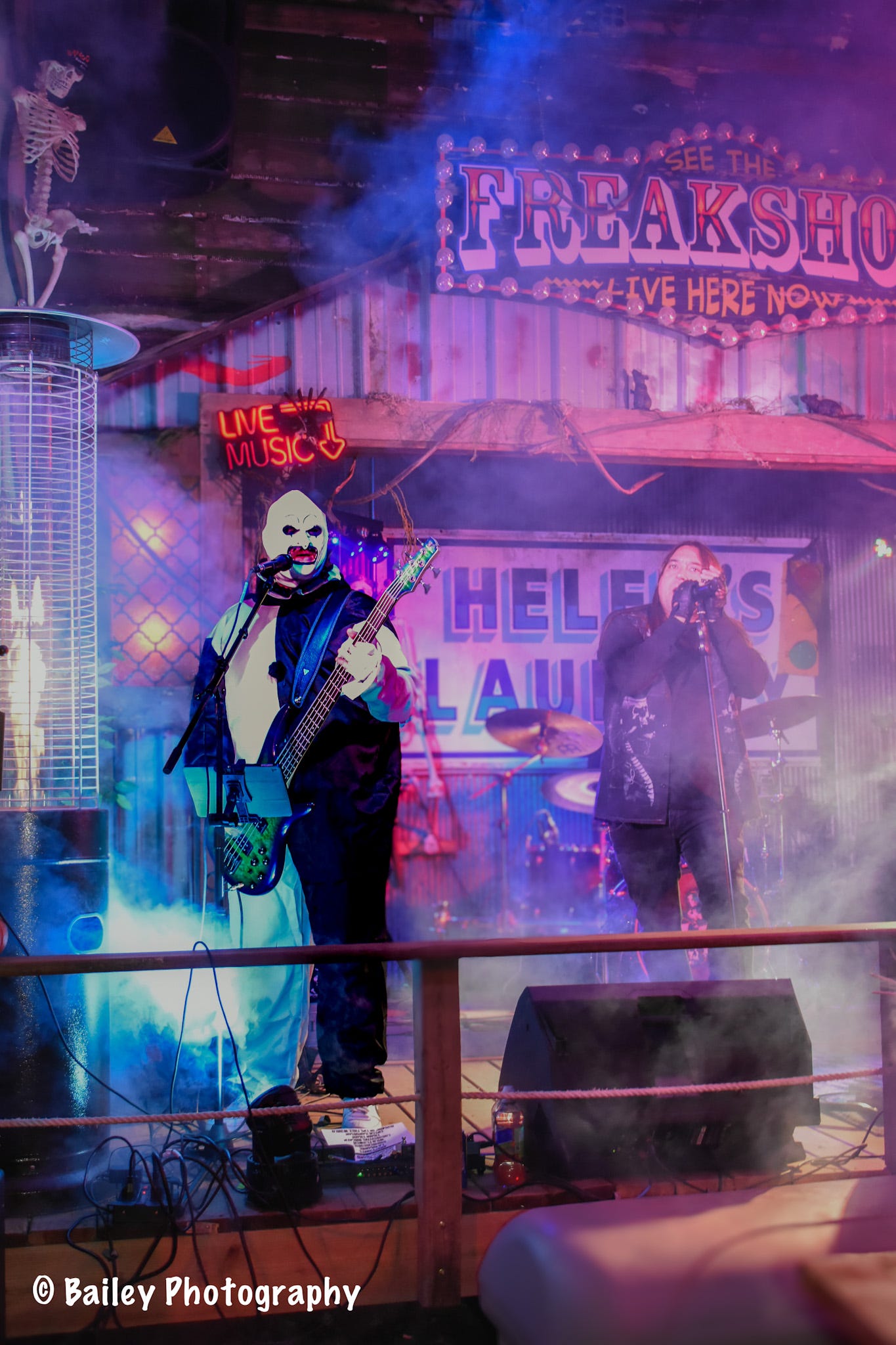 The band’s performance was elevated by the unique venue. The screams and roar of the chainsaws from the surrounding haunted house only added to the band’s ferocious sound. Set highlights included the raging energy sparked by ZZ Top’s La Grange and Metallica’s Enter Sandman. The interaction peaked when haunted house characters, like the terrifying Dr. Smiley, took moments to get their fists in the air, with Dr. Smiley even rocking out on stage with Reload.