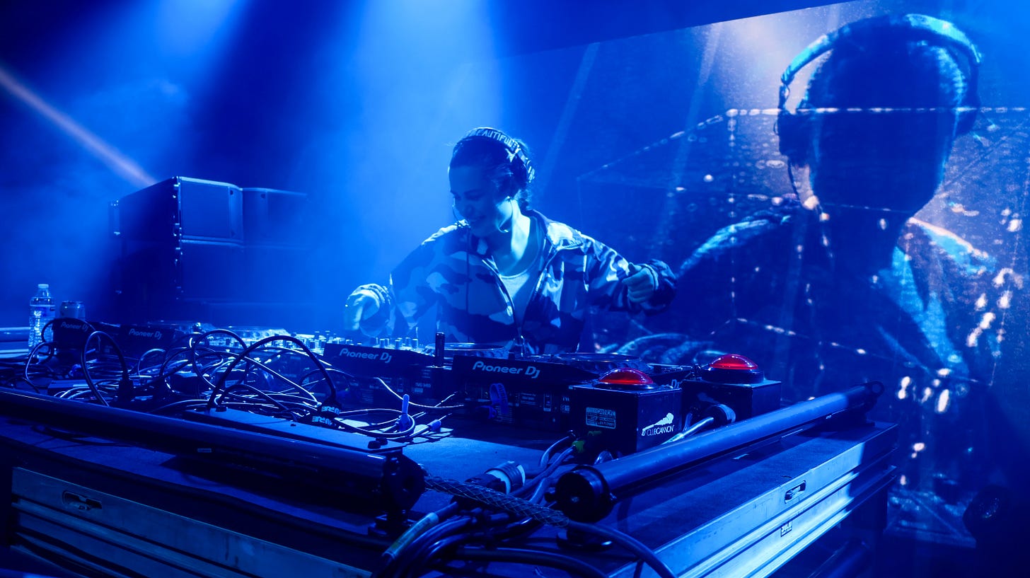As always, her set was great. And the way her hair whipped around as she let the music move her was honestly aesthetically pleasing. Not staged. Not posed. Just pure kinetic release — like her body was translating the beat into something visual. That’s the difference between a DJ “playing” and a DJ living inside the sound.