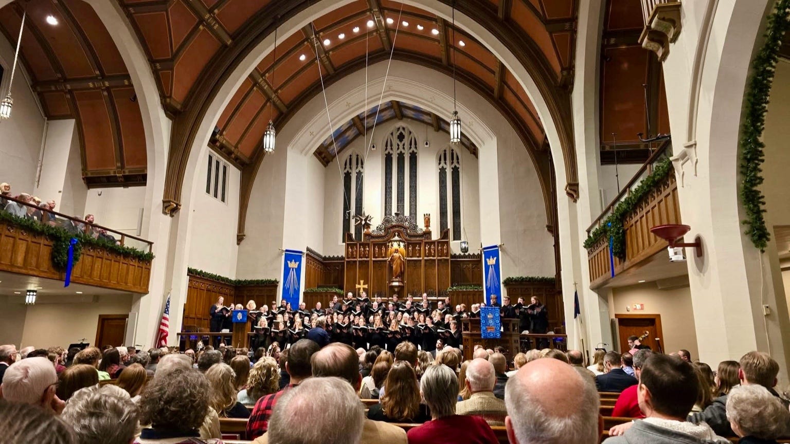 First Lutheran’s sanctuary acts like another instrument. The strings carried a warm glow through the space; trumpets and timpani rang out clearly without ever overwhelming the choir. The chorus filled the room with a rich, blended sound that suited the church’s stone and wood, giving familiar lines a fresh weight.