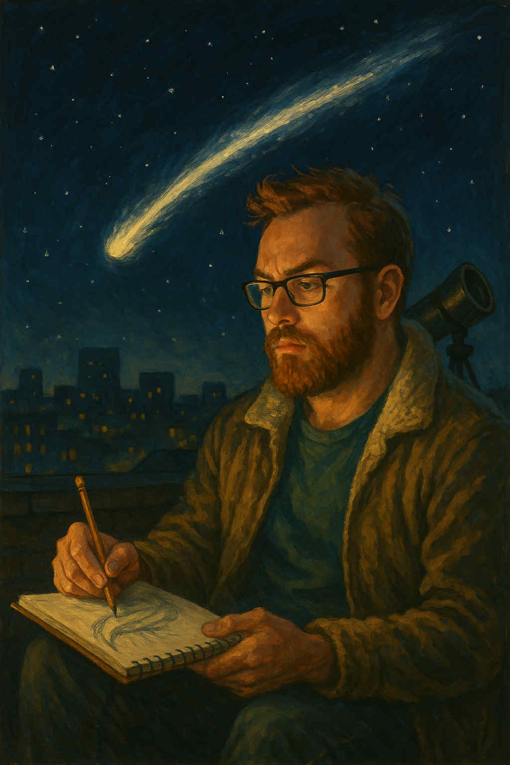 So, he began to draw instead. The comet scrawled in margins, the silver blaze arcing across page after page, always slightly different, always incomplete. His students noticed the shift: the precise professor suddenly absentminded, chalk pausing mid-equation as his eyes drifted toward the window.