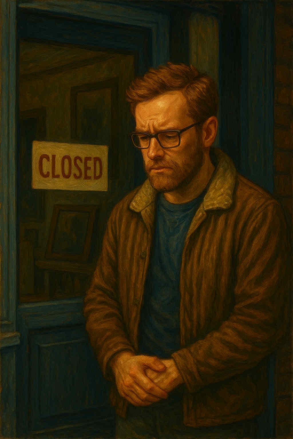 He went to the gallery after class. The lights were off. A note was taped crookedly to the door: Closed until further notice.