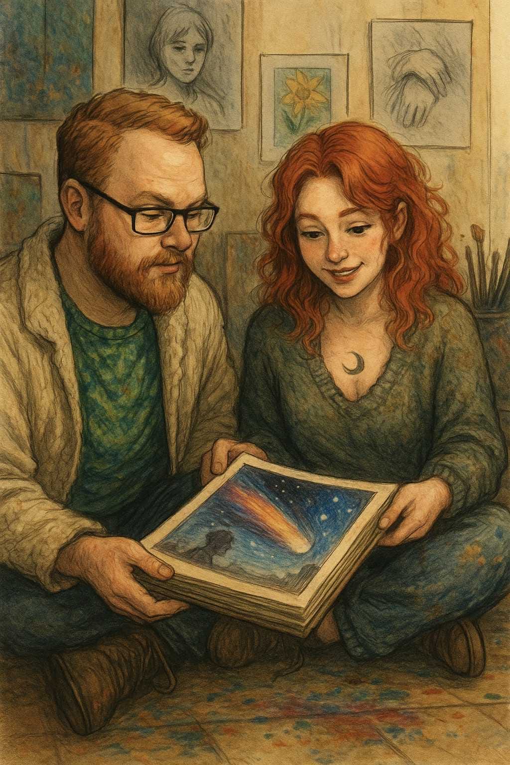 The gallery was quieter than usual that evening. No students drifting through for credit, no curious couples wandering hand in hand. Just Claire, cross-legged on the floor, sketchbook open across her knees.