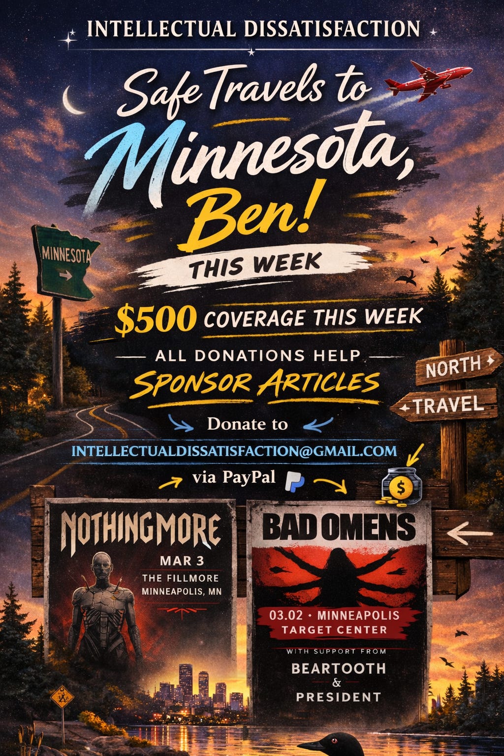 Ben’s headed to Minnesota, and we’re doing what we always do when the road starts calling. We show up, we take notes like our lives depend on it, we chase the human moments between the decibels, and we turn a loud night into something you can feel on the page.
