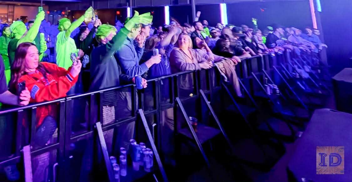 By the time will call wrapped and I walked into The District, the room felt more like a dress rehearsal than a pre-holiday throwdown: small pockets of friend groups, plenty of open rail, bartenders with zero stress in their eyes. I met up with our photographer Ben down on the floor, both of us show veterans thinking the same thing — this was going to be one of those nights where the music had to do extra work to make the room feel full.