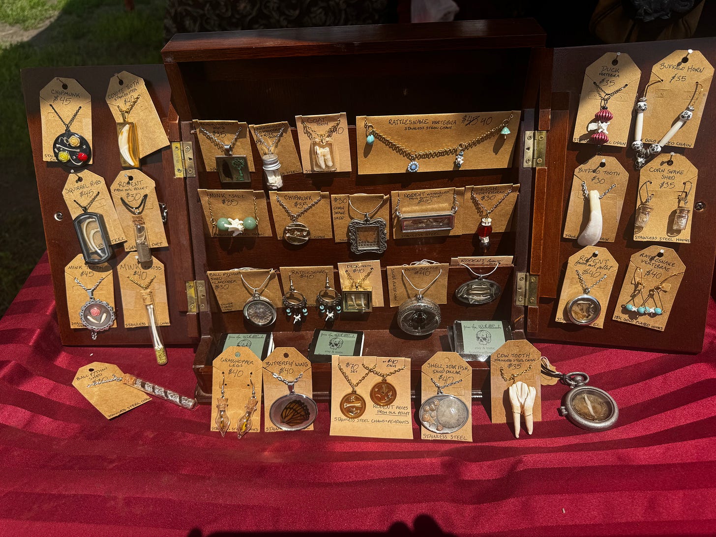 The Market Field was bustling with vendors and vagabonds. Wassail Horns enchanted us with jewelry forged from the bones and hides of ethically scavenged beasts—truly a barbarian’s bling.