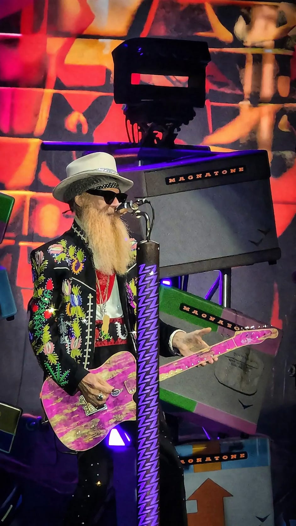 There’s history on that stage, but it’s not stuck in the past. Billy Gibbons still moves with that signature ease, throwing out gestures and lines that feel as much like conversation as performance. Elwood Francis, stepping into the role left by Dusty Hill, holds the low end with a steady confidence that honors what came before without trying to imitate it outright. And John Douglas, filling in behind the kit while Frank Beard focuses on his health, keeps everything locked in, tight and unshaken.